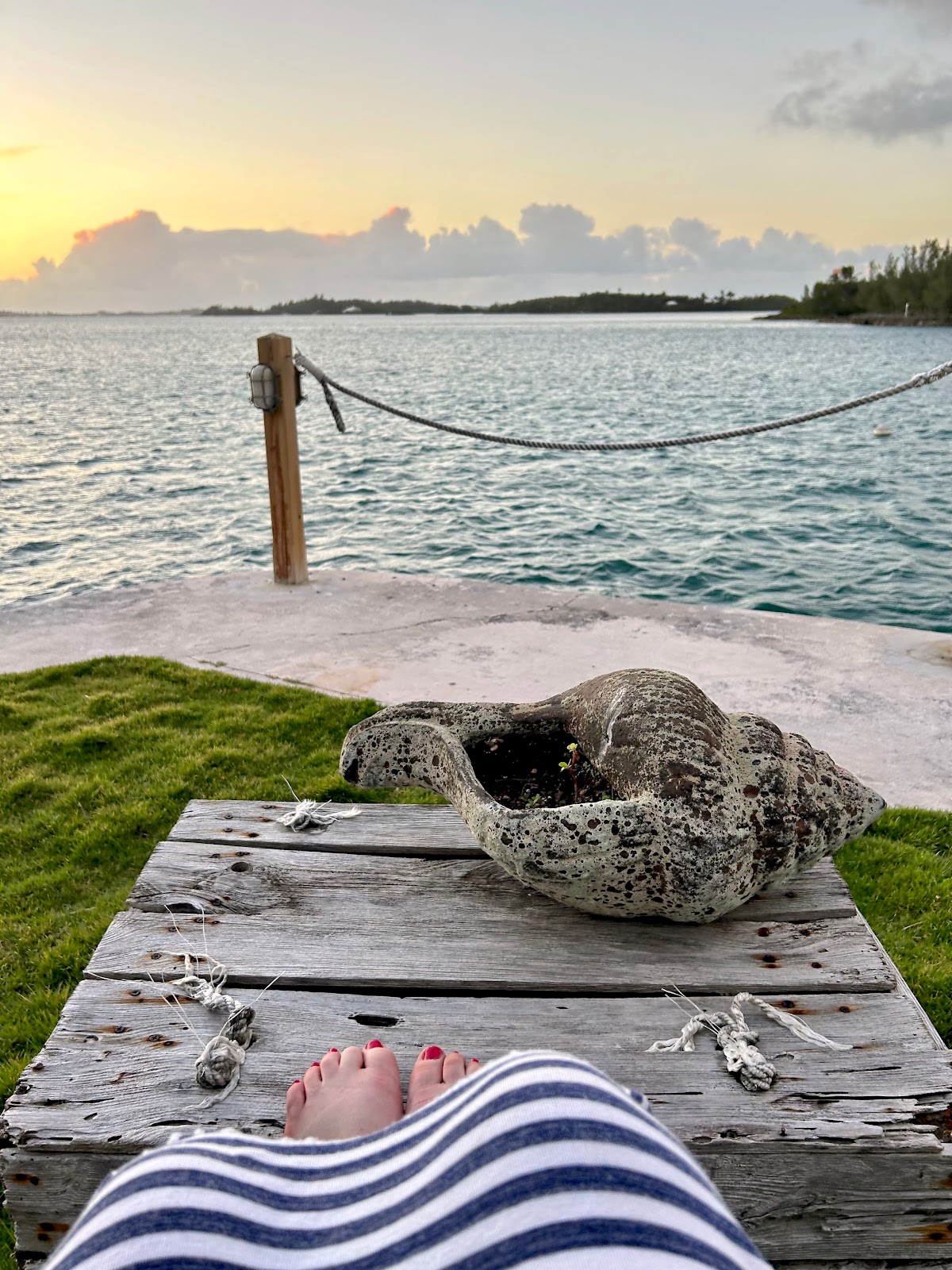 Those who know me, will attest that I am a diehard swimmer- not a good swimmer, per se. I have never learned to do the crawl. Certainly not the butterfly! Not at all in a league with Flora Duffy. Honestly, I swim like a frog. But- with that said, I love the water like nothing else. Where there is a pool in sight, I must go in. When Carole heard this, she put the outdoor lights on at dusk- just for my sunset splash. (Mind you, Bermudians do not swim in the winter!)